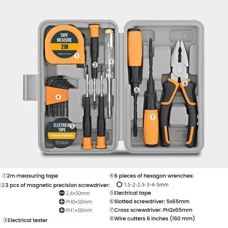 - 12-piece screwdriver bits: 3-4-6mm, PH1-PH2-PH3, H4-H6, T10-T15-T20-T25