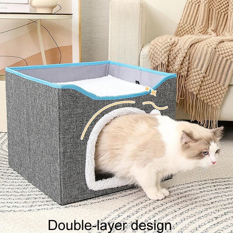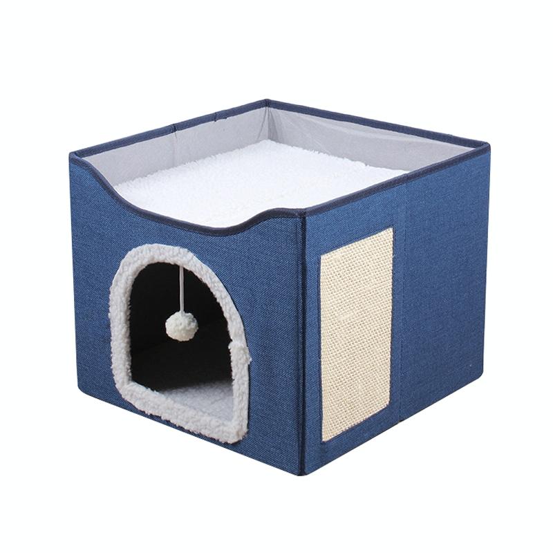 Multifunctional Sisal Cats Scratching Board Foldable Pet Bed(Navy Blue)