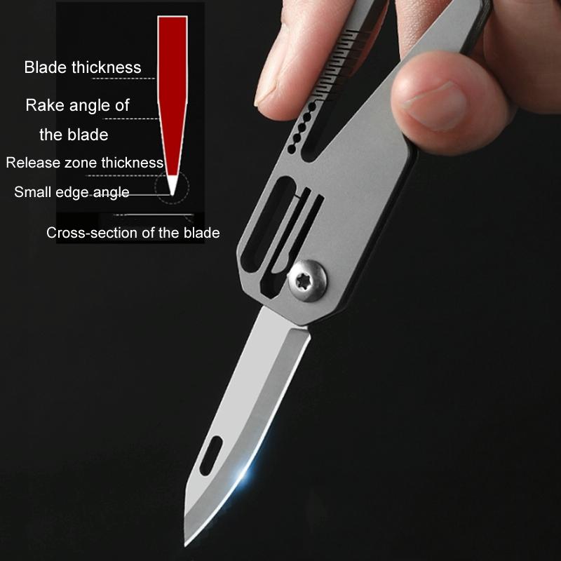 Multifunctional Titanium Keychain Outdoor Portable Defense Mini Folding Knife, Style: With Steel Ring