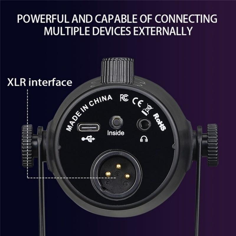 5. Ear Monitoring Function: The microphone is equipped with a 3.5mm headphone jack, which is connected to the headphone monitoring hole. Can hear the sound of the computer and one's own voice