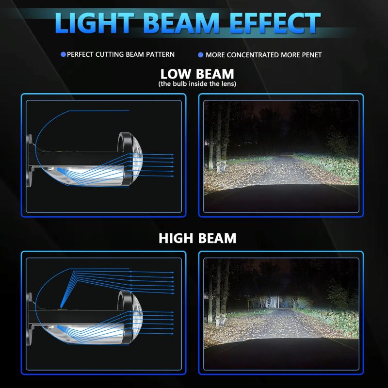 1. Adopting a unique lens design, the light pattern has a low-beam tangent effect. The light pattern is concentrated and rejects astigmatism, making driving safer.
