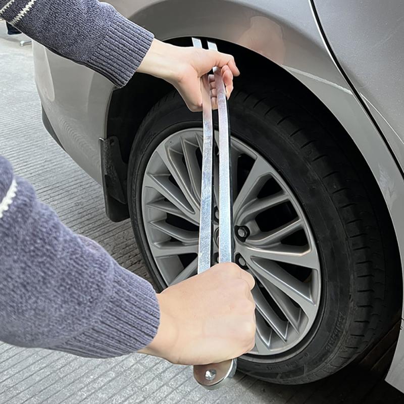 (4). Extend the crowbar into the back of the dent and force the dent out