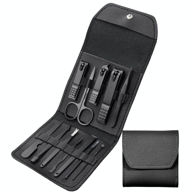 Nail Art Tool Set Nail Clippers Dead Skin Scissors Manicure Tool, Specification: 12 In 1 Black