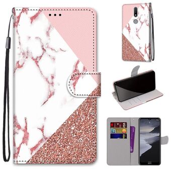 For Nokia 2.4 Coloured Drawing Cross Texture Horizontal Flip PU Leather Case with Holder & Card Slots & Wallet & Lanyard(Pink Stone Texture)