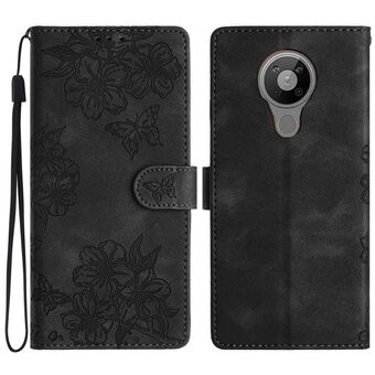 For Nokia 5.4 Cherry Blossom Butterfly Skin Feel Embossed PU Phone Case(Black)