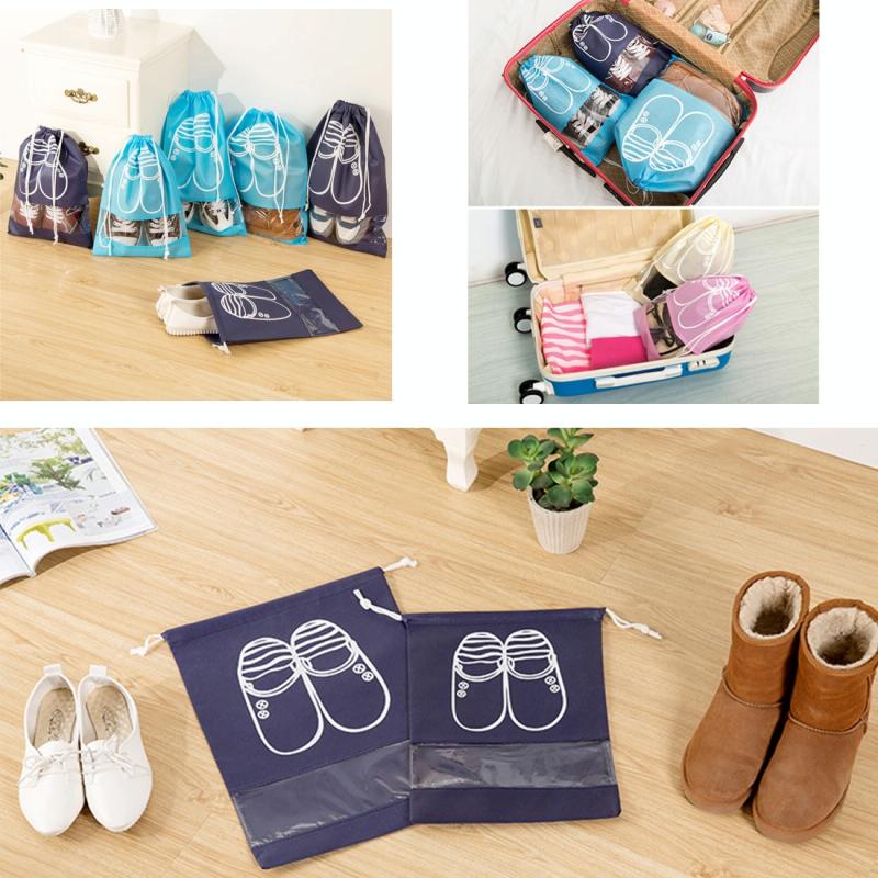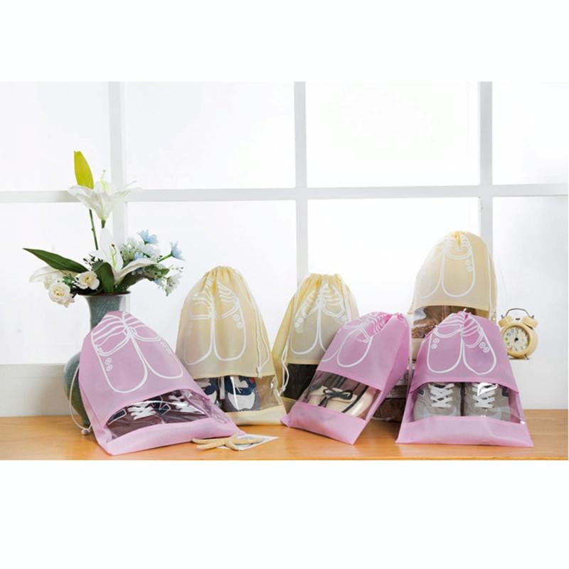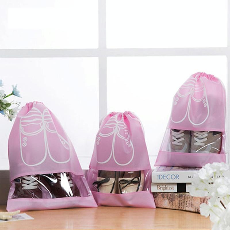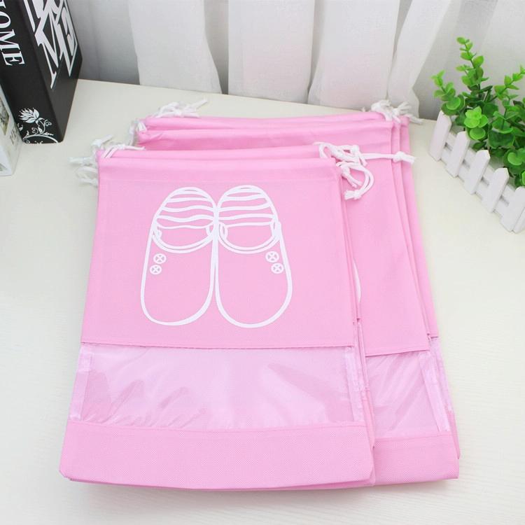 Non-Woven Drawing Belt Shoe Pouch,Small Size(Pink)