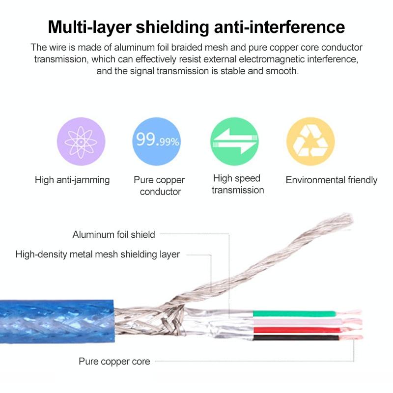 Normal USB 2.0 AM to BM Cable, with 2 core, Length: 5m(Blue)