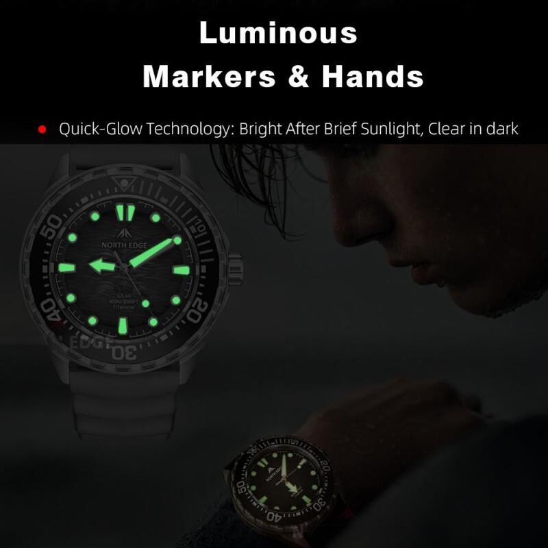4. Clear Luminous & Display: Hands/markers with Quick-Glow luminous tech (clear in dark), dial made of 3D micro-optical composite for stunning clarity.