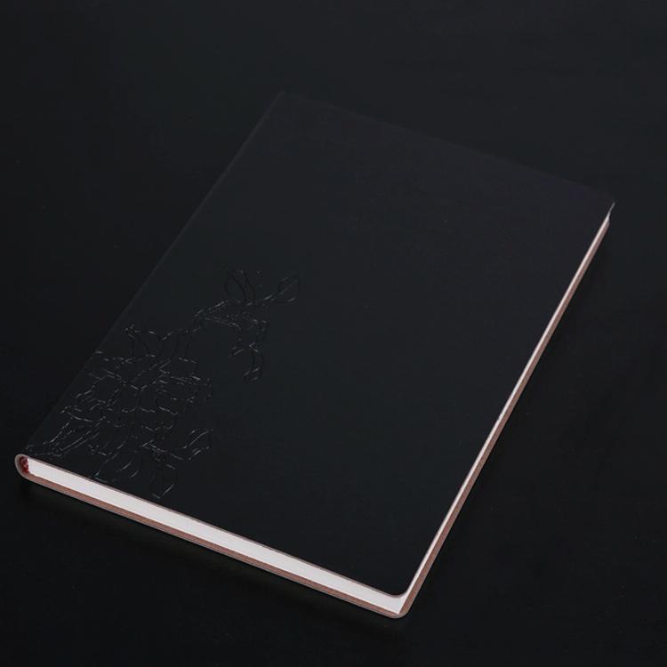 Notebook Student Notepad Diary Book Business Record Book PU Notebook, Cover color: A5 Embossed Black
