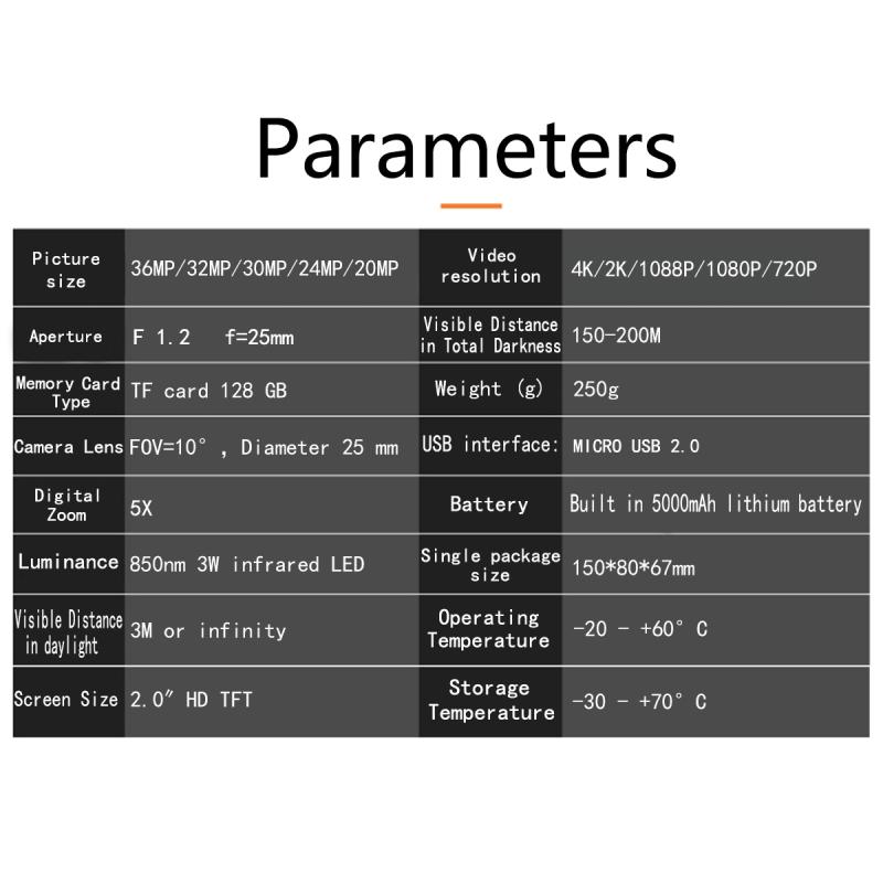 5. Infrared light: 1 850 LED, can shoot 100-150 meters away