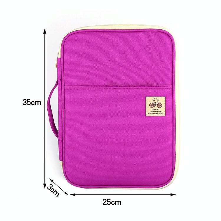 Office Supplies Multi-purpose Zipper Document Folder A4 Storage Bag(Purple)