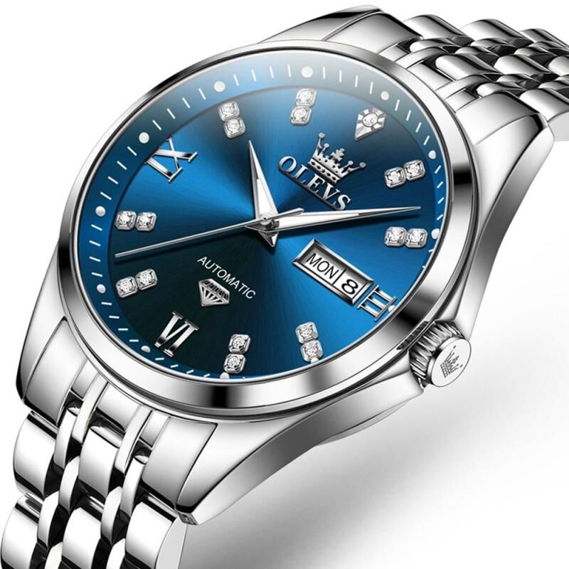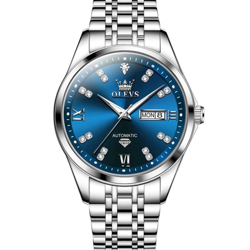 OLEVS 9801 Men Diamond Waterproof Dual Calendar Mechanical Watch(Blue) (OLEVS)