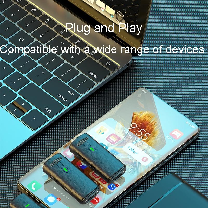 One To Two Outdoor Recording Lavalier Microphone Noise Canceling Wireless Mics, Interface: Type-C