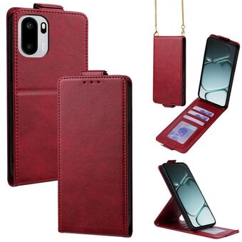 For OnePlus Ace 6 Vertical Flip Cover Solid Color Vegan Leather Phone Case with Crossbody Chain(Red)