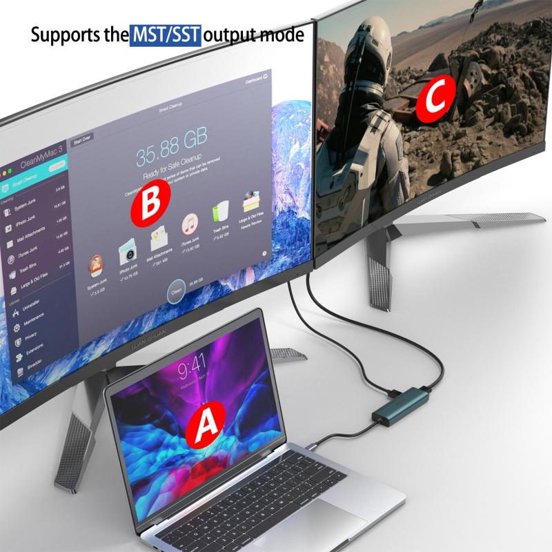 This product is a USB-C to dual HDMI video converter. The HDMI interface supports a maximum resolution of 4K 60Hz. When two HDMI channels are output at the same time, the resolution is 4K 30Hz. Interface: 2xHDMI+2xUSB 2.0+1xPD3.0 interface