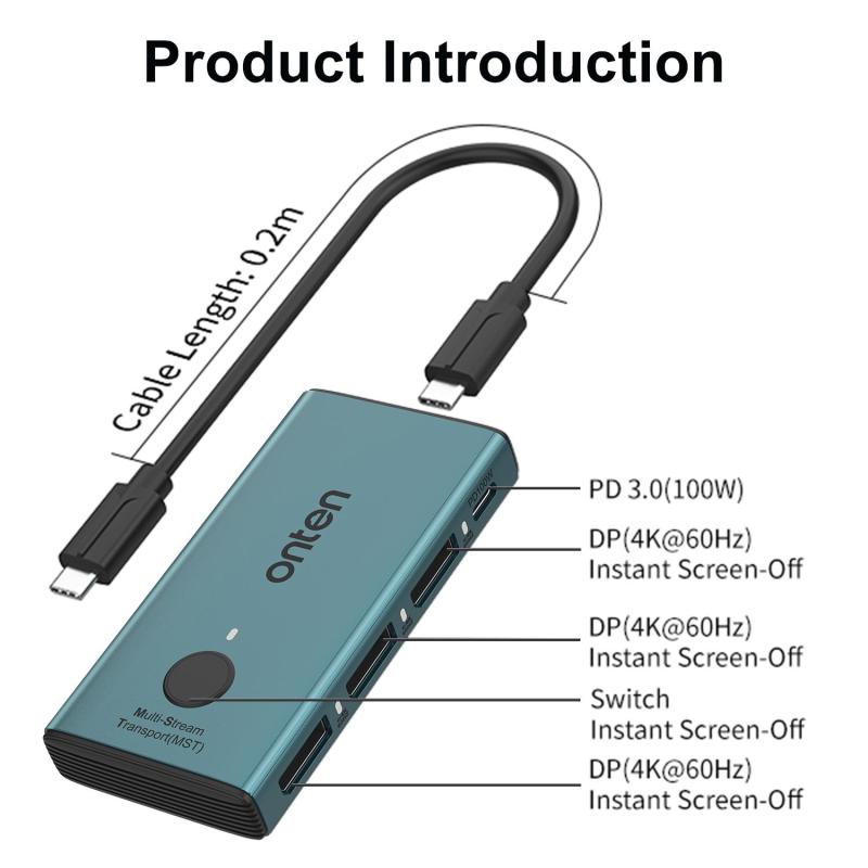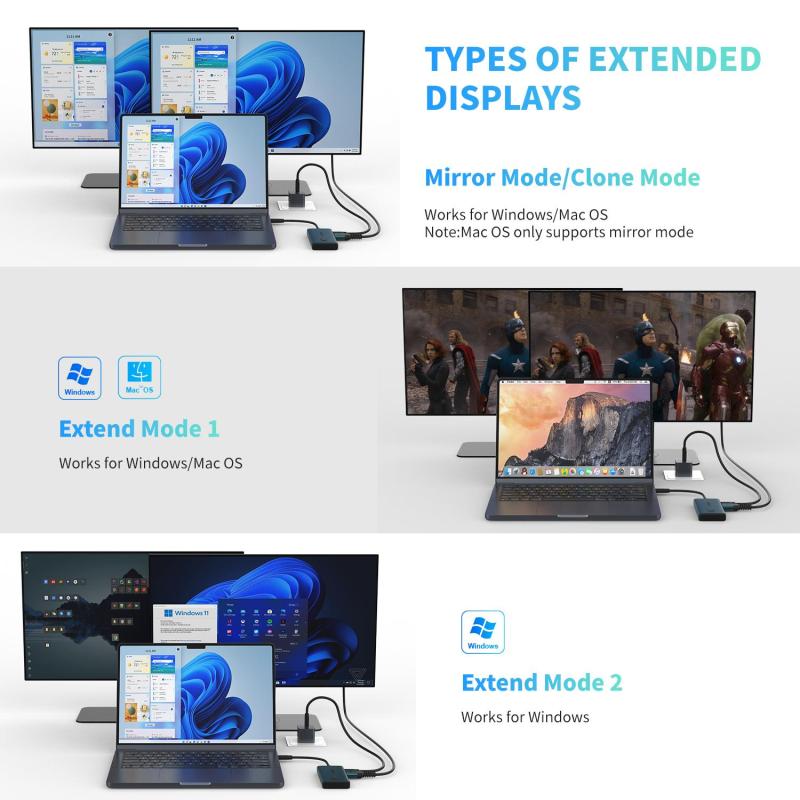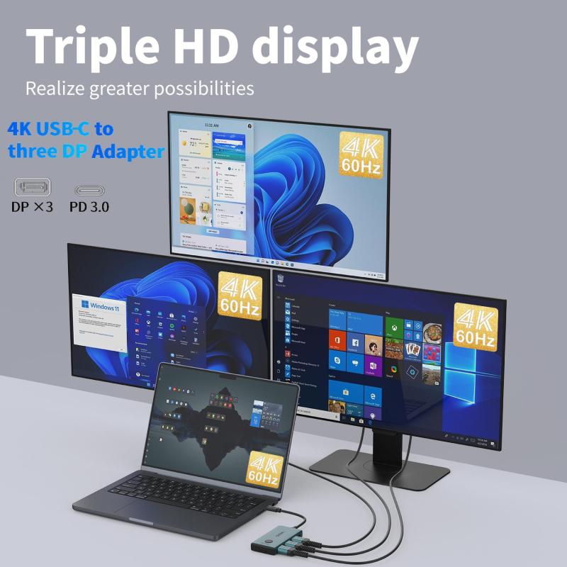 1. Multi-screen Expansion Support: Supports Multi-Stream Transport (MST) technology, allowing simultaneous output to multiple displays via a single USB-C interface, easily enabling extended or mirrored modes and significantly improving office and multitasking efficiency.