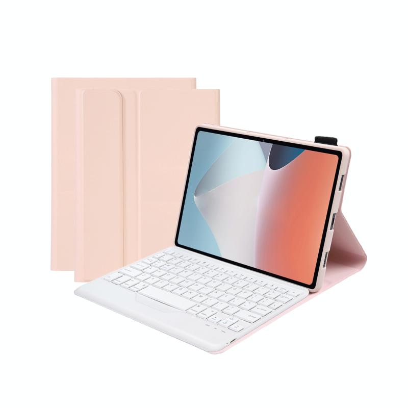OP12-B Lambskin Texture Ultra-thin Bluetooth Keyboard Leather Case For OPPO Pad Air 10.4 inch(Pink)