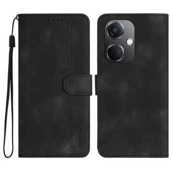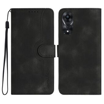 For OPPO A58 Heart Pattern Skin Feel Leather Phone Case(Black)