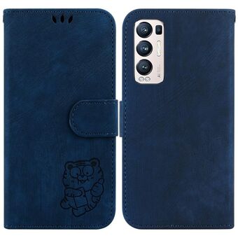For OPPO Find X3 Neo / Reno5 Pro+ 5G Little Tiger Embossed Leather Phone Case(Dark Blue)
