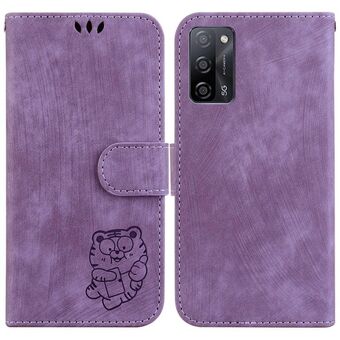 For OPPO A55 5G / A53S 5G / A54 4G Little Tiger Embossed Leather Phone Case(Purple)