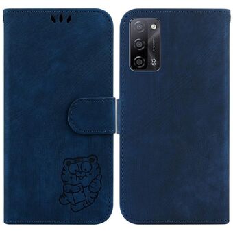 For OPPO A55 5G / A53S 5G / A54 4G Little Tiger Embossed Leather Phone Case(Dark Blue)