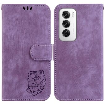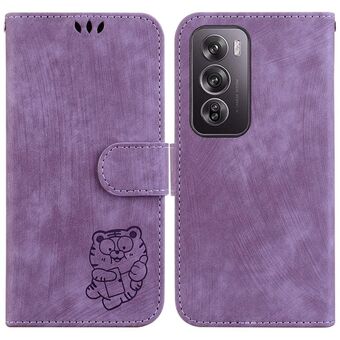 For OPPO Reno12 5G Global Little Tiger Embossed Leather Phone Case(Purple)