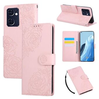 For OPPO Reno7 4G / F21 Pro 4G Rose Flower Embossed 3-Card Slots Leather Phone Case(Pink)