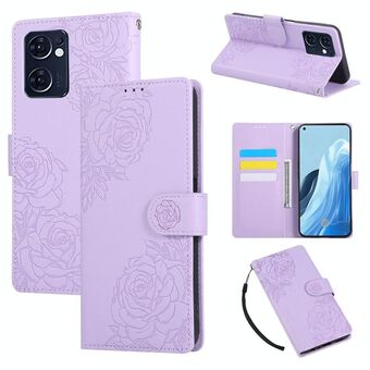For OPPO Reno7 4G / F21 Pro 4G Rose Flower Embossed 3-Card Slots Leather Phone Case(Purple)
