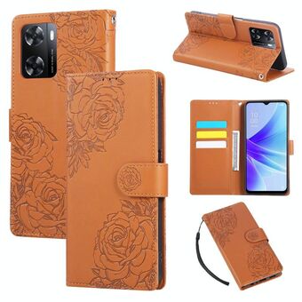 For OPPO A77 Rose Flower Embossed 3-Card Slots Leather Phone Case(Brown)