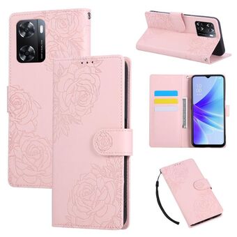 For OPPO A77 Rose Flower Embossed 3-Card Slots Leather Phone Case(Pink)