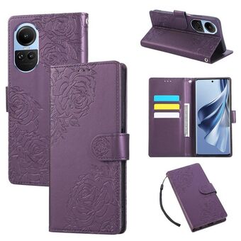 For OPPO Reno10 5G Global Rose Flower Embossed 3-Card Slots Leather Phone Case(Purple)