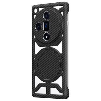 For OPPO Find X7 Ultra Hollow Carbon Fiber Rotating Bracket MagSafe Phone Case(Black)