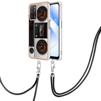 For OPPO Reno8 T 4G Electroplating Dual-side IMD Phone Case with Lanyard(Retro Radio)