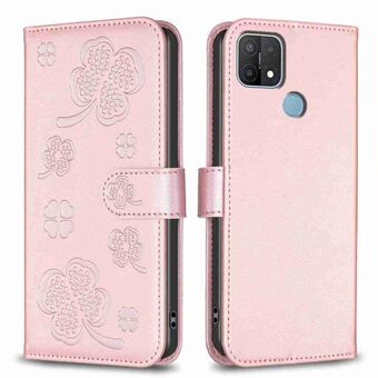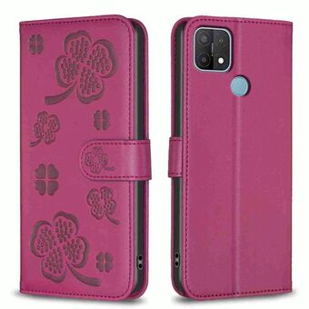 For OPPO A15 Four-leaf Embossed Leather Phone Case(Rose Red)