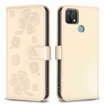 For OPPO A92 / A72 / A52 Four-leaf Embossed Leather Phone Case(Gold)