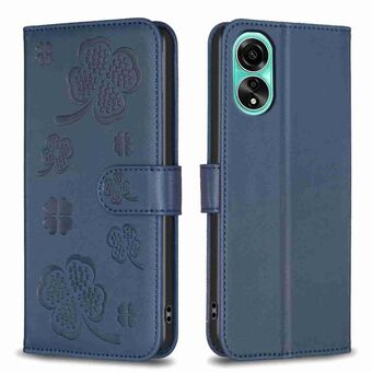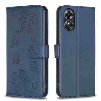 For OPPO A58 4G Four-leaf Embossed Leather Phone Case(Blue)