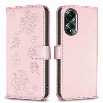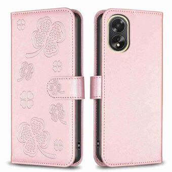 For OPPO A58 4G Four-leaf Embossed Leather Phone Case(Pink)