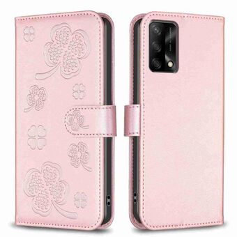 For OPPO A94 4G / Reno5 F / F19 Pro Four-leaf Embossed Leather Phone Case(Pink)