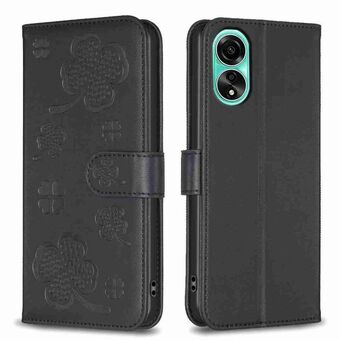 For OPPO A58 4G Four-leaf Embossed Leather Phone Case(Black)