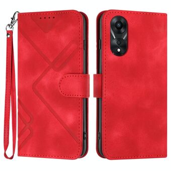 For OPPO A78 Line Pattern Skin Feel Leather Phone Case(Red)