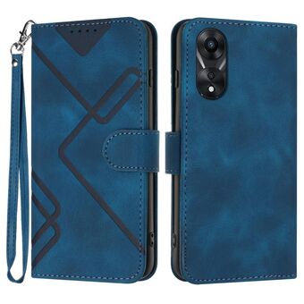 For OPPO A58 Line Pattern Skin Feel Leather Phone Case(Royal Blue)