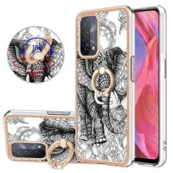 For OPPO A58 4G Electroplating Dual-side IMD Phone Case with Ring Holder(Totem Elephant)