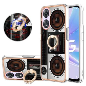 For OPPO A58 4G Electroplating Dual-side IMD Phone Case with Ring Holder(Retro Radio)