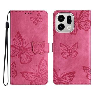 For OPPO Find X9 Skin-feel Embossed Butterfly Leather Phone Case(Rose Red)