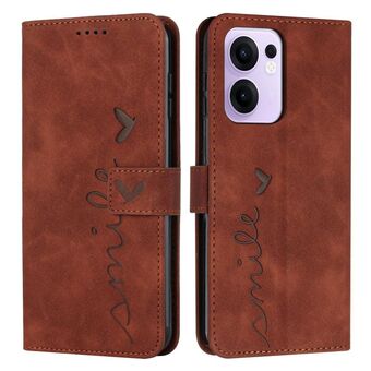 For OPPO Reno13 F 5G / 4G Skin Feel Heart Embossed Leather Phone Case with Long Lanyard(Brown)