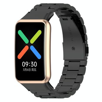 For OPPO Watch Free Tri-beads Flat Buckle Titanium Alloy Watch Band(Black)