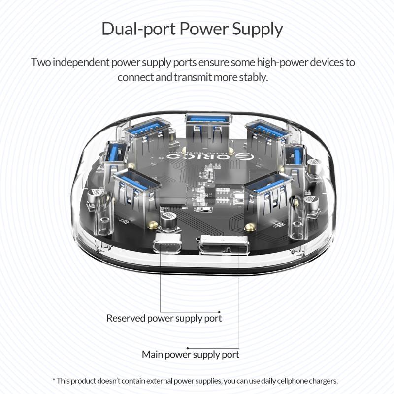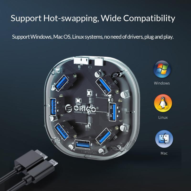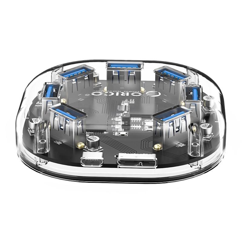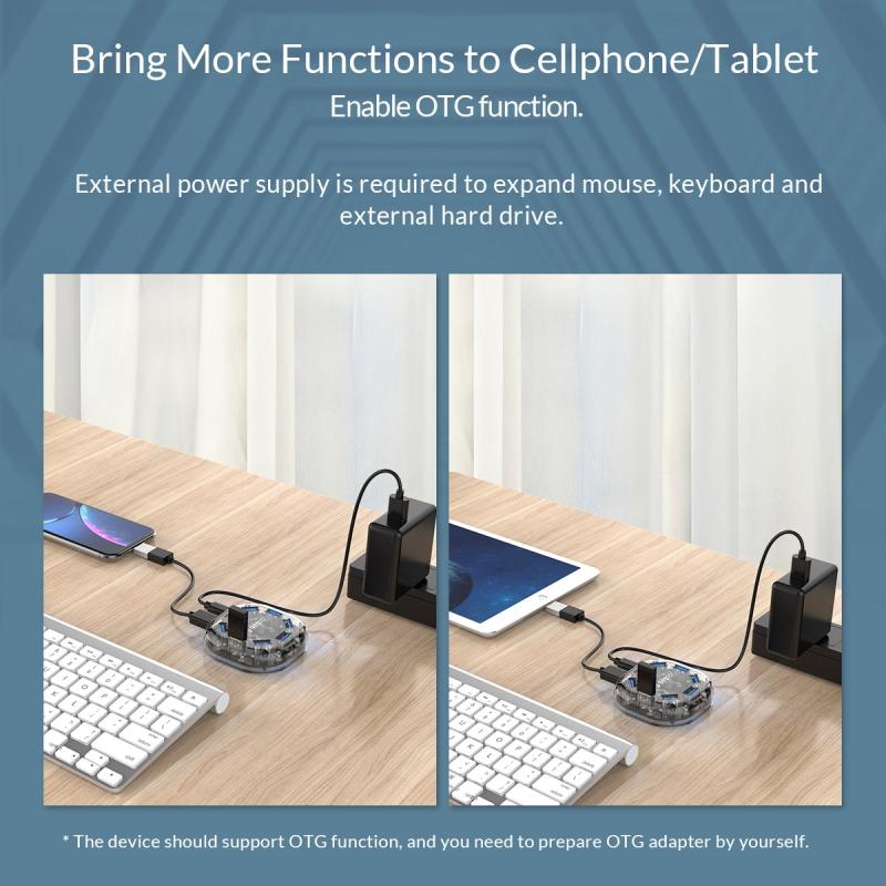 Transparent series hub with blue light indicator light vertical plug-in design is compact and convenient