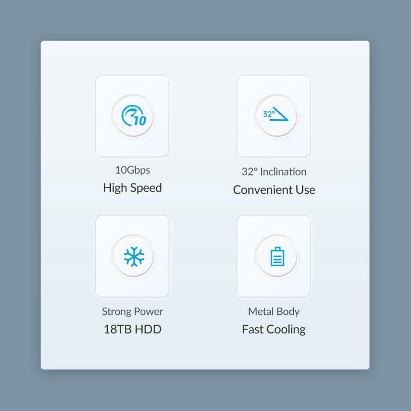 11. Equipped with 24V independent power adapter, supports high-power devices, easily drives 18TB large-capacity hard disk