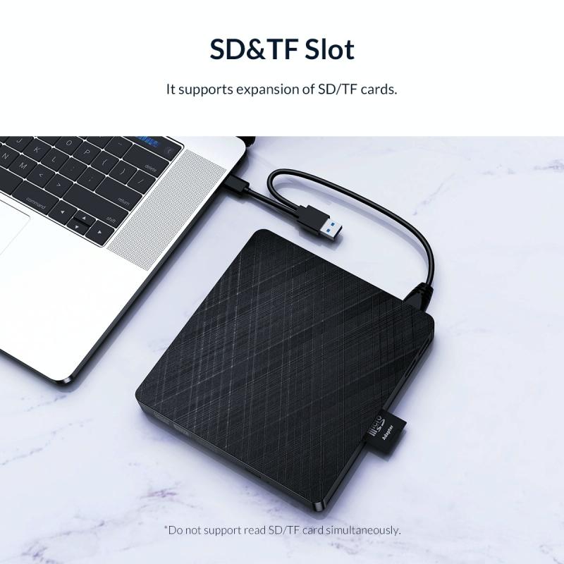 7. Supported reading types: DVD ROM (single layer), DVD ROM (double layer), DVD+R/DVD-R, DVD+R DL/DVD-R DL, DVD+RW/DVD-RW, DVD RAM, CD ROM/ finalized CD RW, Data/CD-DAE, Video CD, finalized CD RW. Unfinalized CD-R/RW, TF card SD card