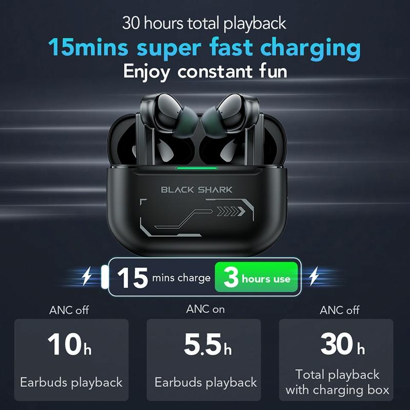 5. Built-in shark sauce voice prompts, support in-ear detection, mode switching, low-battery prompts and other voice prompts in multiple scenarios